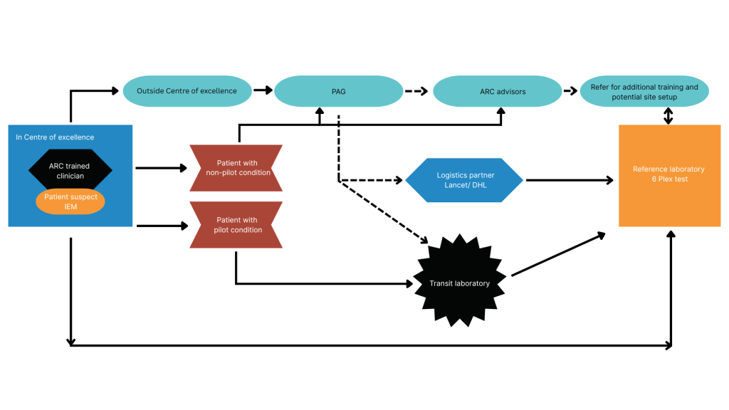 It all starts and ends with the patient. When patients need help, they usually go to a hospital or a patient organisation. From there, they need to be referred to the appropriate centre or laboratory that can provide a diagnosis. Currently, this can be very challenging, but this project aims to make the process much easier for everyone. We want to develop a clear roadmap of where to refer patients for diagnosis, saving time and improving the patient’s journey.